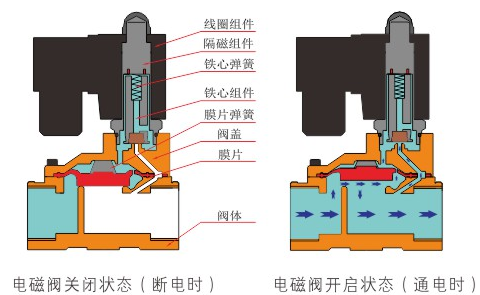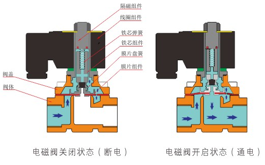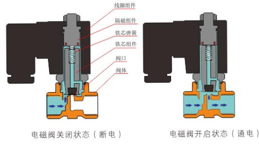 原理:开云·官方端页面网站登录入口-开云online(中国)直动式电磁阀分常闭型和常开型两种。常闭型电磁阀断电时为关闭状态,线圈通电时产生电磁力,动铁芯跟静铁芯吸合,电磁阀阀口打开,介质(流体)通过;当电磁阀线圈断电时电磁阀消失,在弹簧的作用力下,电磁阀动铁芯复位,阀口关闭,介质(流体)不同,电磁阀呈关闭状态。常开型与之相反。